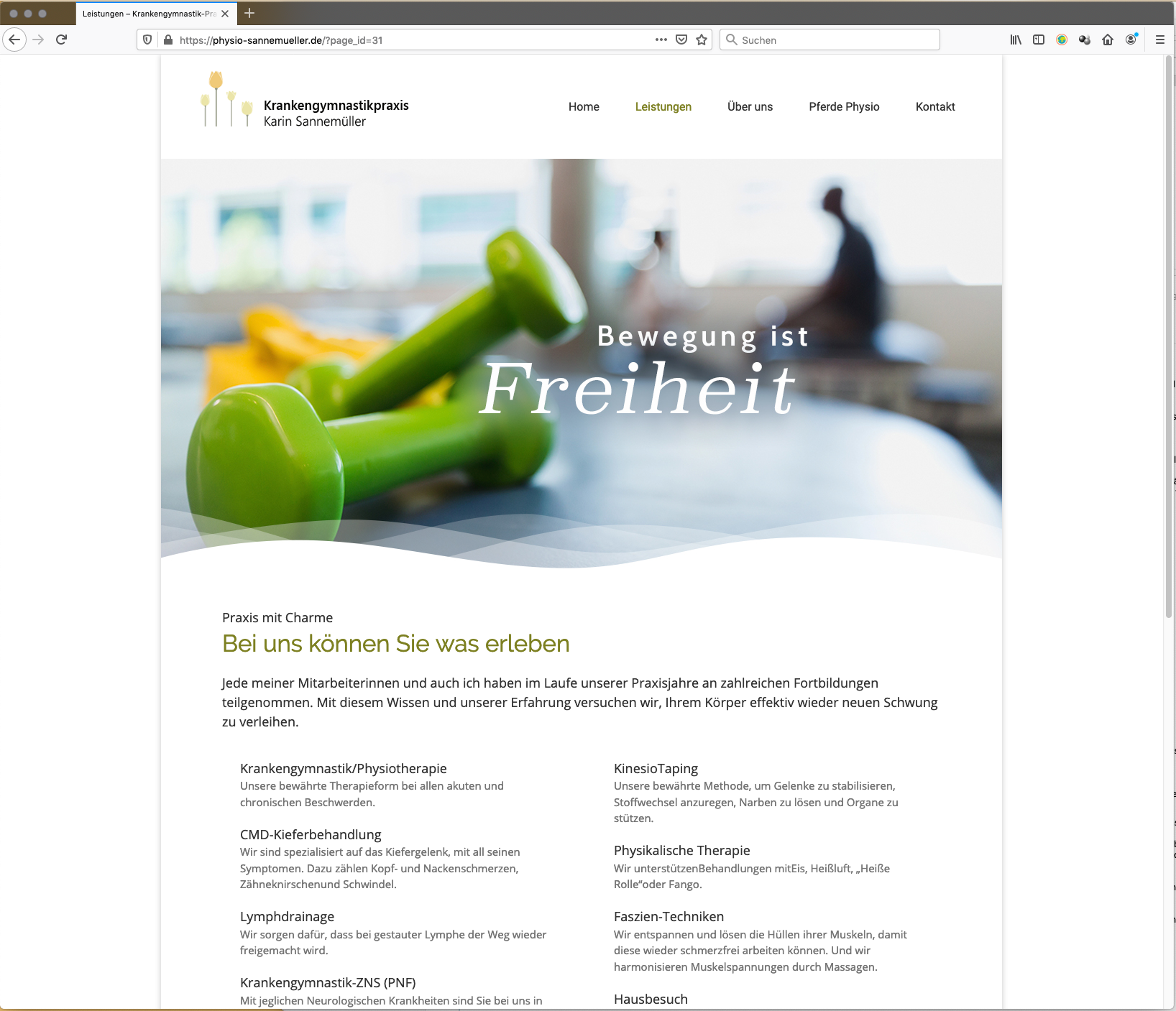 Website-Design für die Krankengymnastikpraxis von Karin Sannemüller: